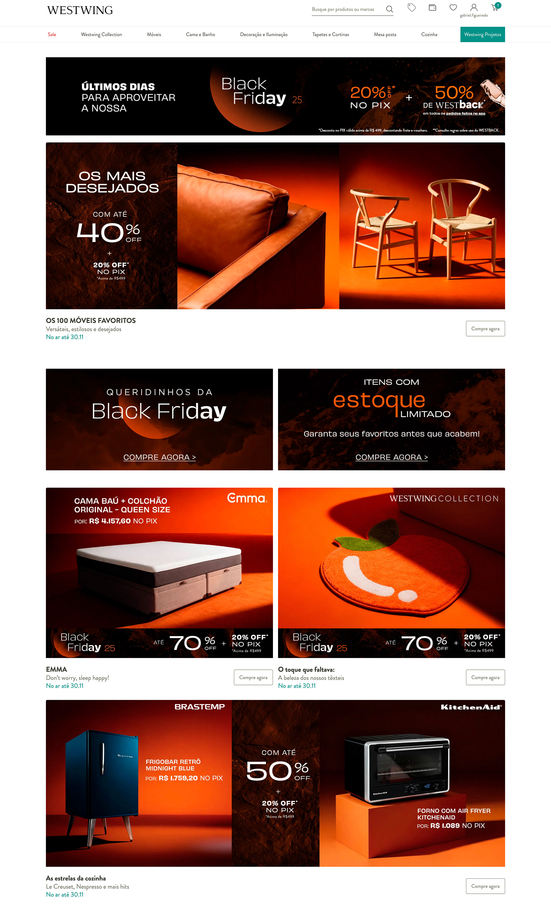 Essa comunicação foi desdobrada através do site, por meio dos banners, newsletters e peças de CRM. Além de também ter se desdobrado para redes sociais, vídeos e também vitrine das lojas.