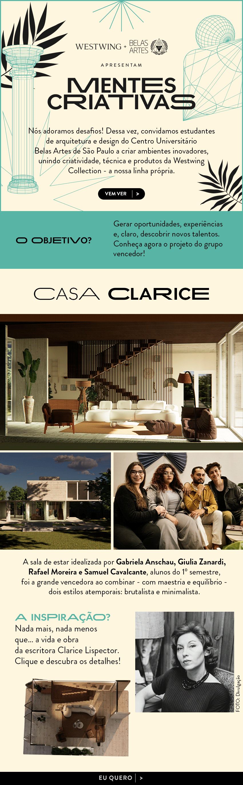 A peça foi criada para mostrar um pouco para os clientes do que foi esse projeto e também divulgar a equipe vencedora: Casa Clarice.